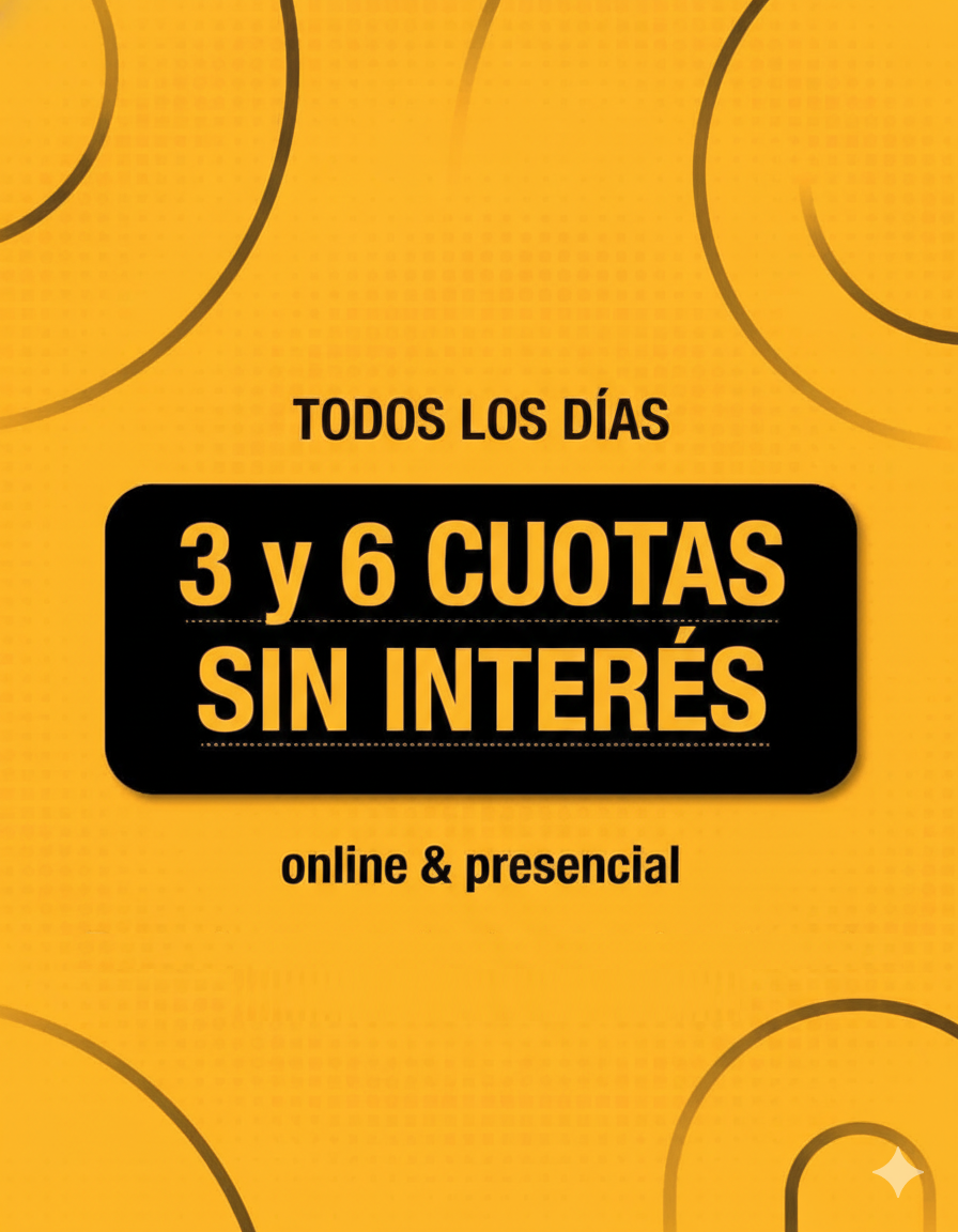6 cuotas sin interés en todos los productos con tarjetas Visa o Mastercard. Online y presencial.